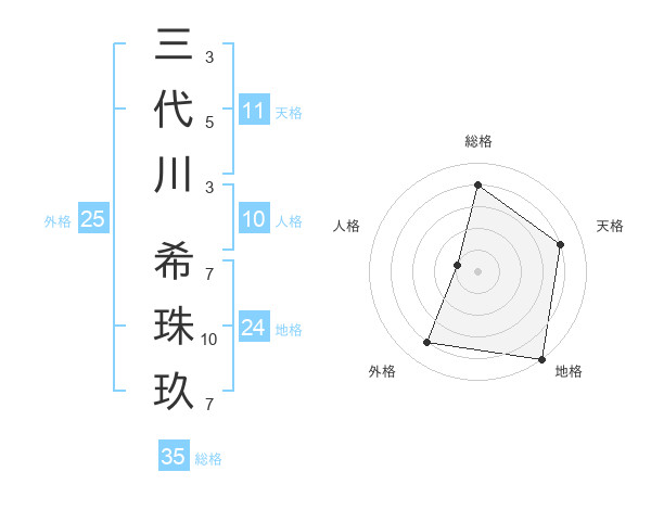 三代川 希珠玖さんを姓名の画数から五運を鑑定