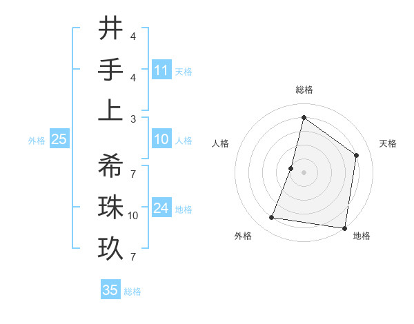 井手上 希珠玖さんを姓名の画数から五運を鑑定