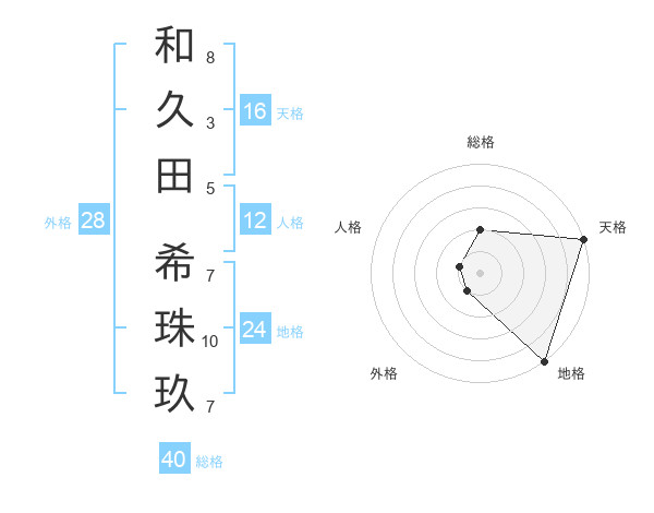 和久田 希珠玖さんを姓名の画数から五運を鑑定