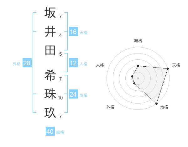 坂井田 希珠玖さんを姓名の画数から五運を鑑定