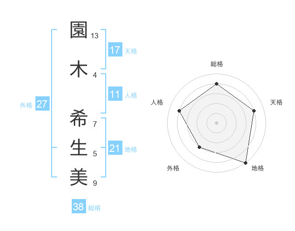 園木 希生美さんの総格は38画の4点!