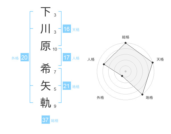 下川原 希矢軌さんを姓名の画数から五運を鑑定