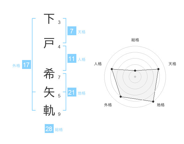 下戸 希矢軌さんを姓名の画数から五運を鑑定