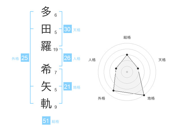 多田羅 希矢軌さんを姓名の画数から五運を鑑定