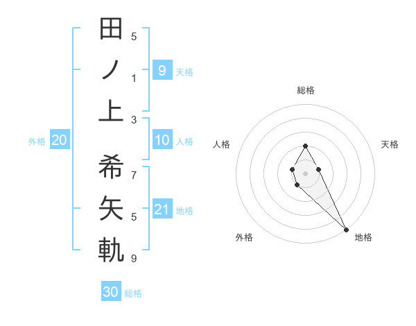 田ノ上 希矢軌さんを姓名の画数から五運を鑑定