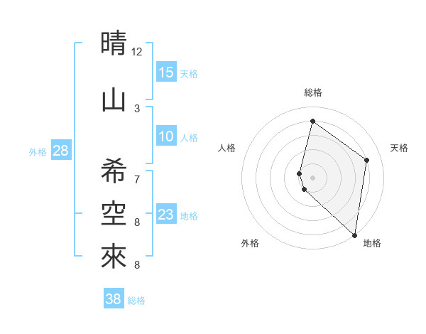 晴山 希空來さんを姓名の画数から五運を鑑定