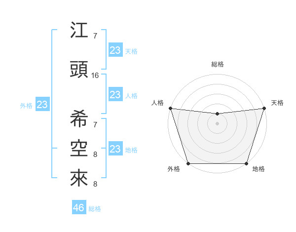 江頭 希空來さんを姓名の画数から五運を鑑定