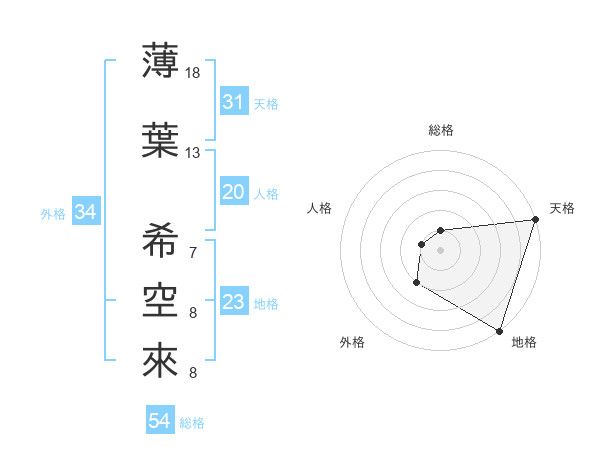 薄葉 希空來さんを姓名の画数から五運を鑑定