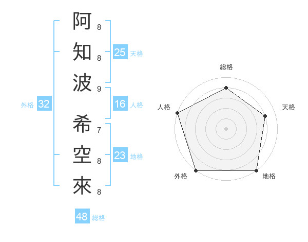 阿知波 希空來さんを姓名の画数から五運を鑑定