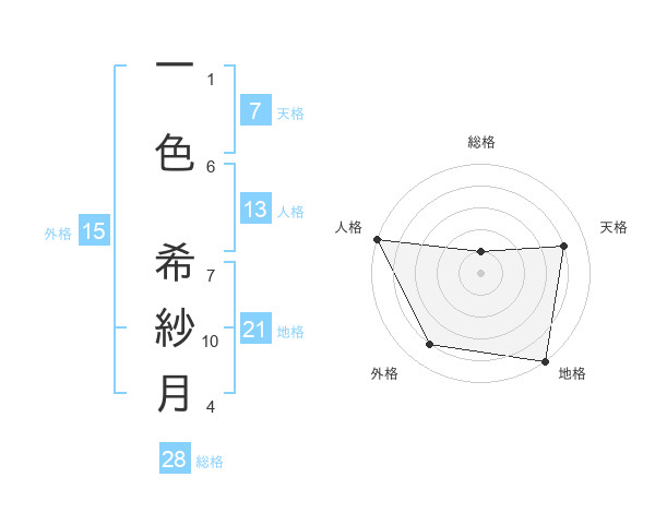 一色 希紗月さんを姓名の画数から五運を鑑定