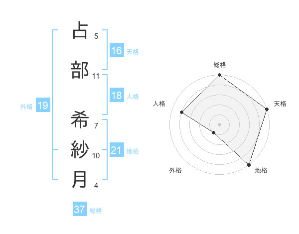 占部 希紗月さんを姓名の画数から五運を鑑定