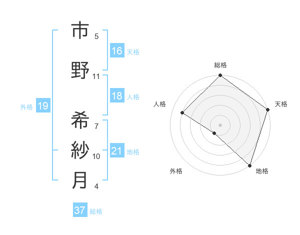 市野 希紗月さんの総格は37画の5点!