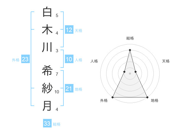 白木川 希紗月さんを姓名の画数から五運を鑑定