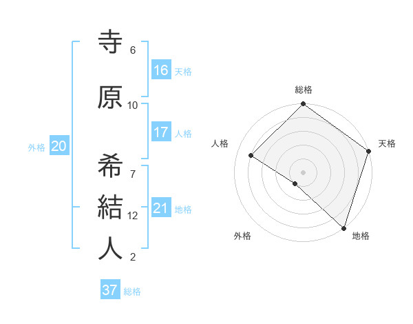 寺原 希結人さんを姓名の画数から五運を鑑定