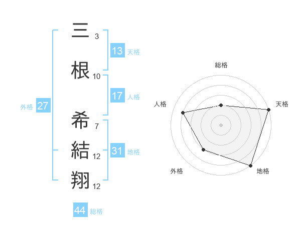 三根 希結翔さんを姓名の画数から五運を鑑定