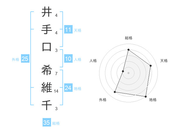 井手口 希維千さんを姓名の画数から五運を鑑定