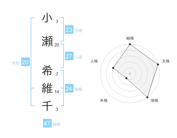 小瀬 希維千さんを姓名の画数から五運を鑑定