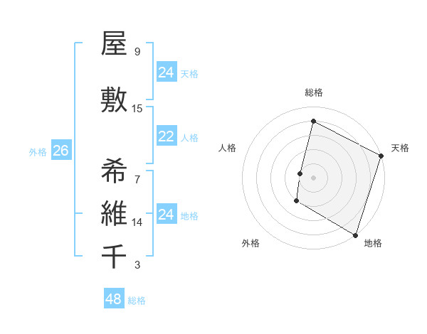 屋敷 希維千さんを姓名の画数から五運を鑑定