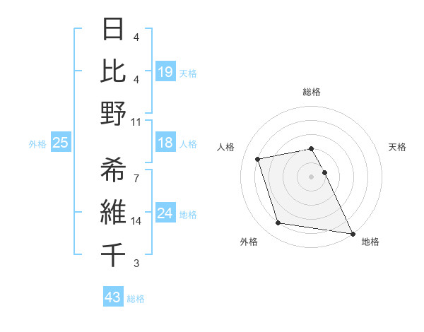 日比野 希維千さんを姓名の画数から五運を鑑定