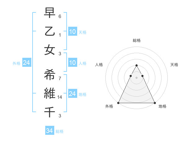 早乙女 希維千さんを姓名の画数から五運を鑑定