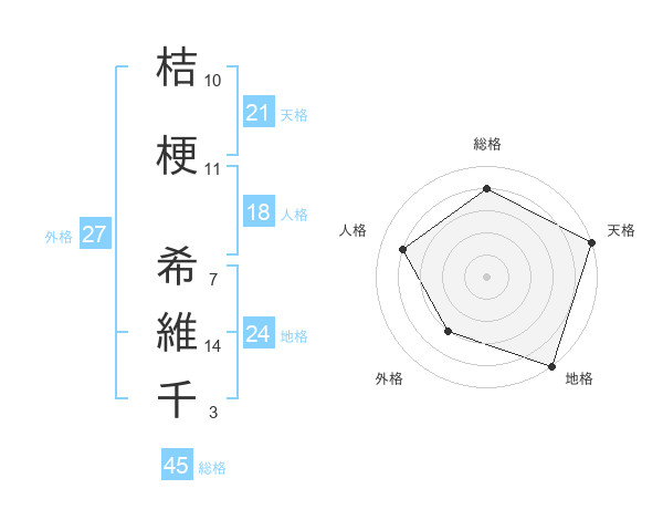 桔梗 希維千さんを姓名の画数から五運を鑑定