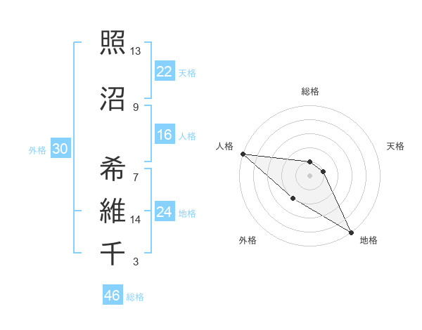 照沼 希維千さんを姓名の画数から五運を鑑定