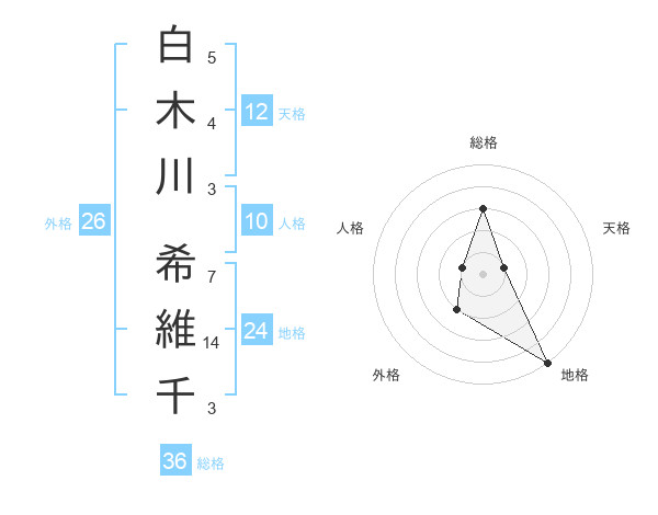 白木川 希維千さんを姓名の画数から五運を鑑定