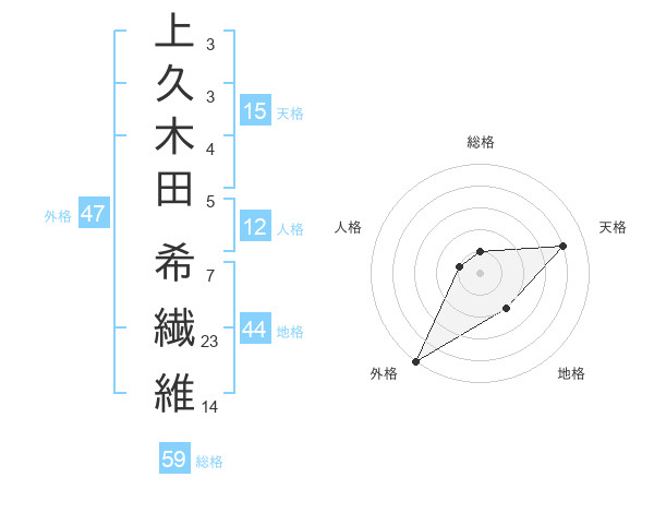 上久木田 希繊維さんを姓名の画数から五運を鑑定