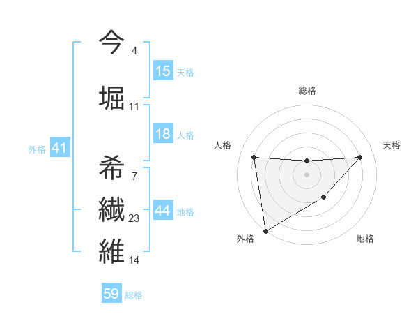 今堀 希繊維さんを姓名の画数から五運を鑑定