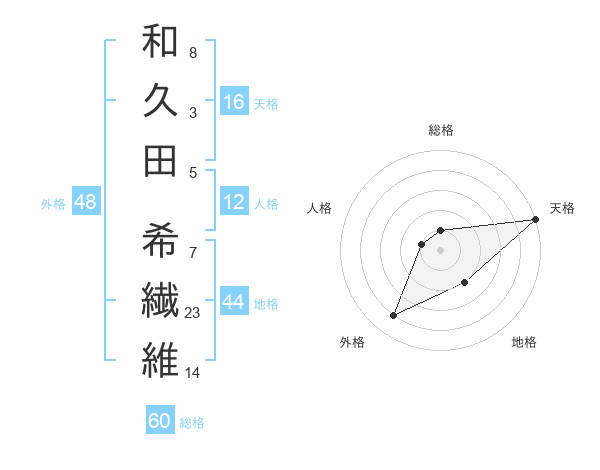 和久田 希繊維さんの総格は60画の1点!