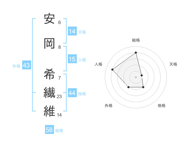 安岡 希繊維さんを姓名の画数から五運を鑑定