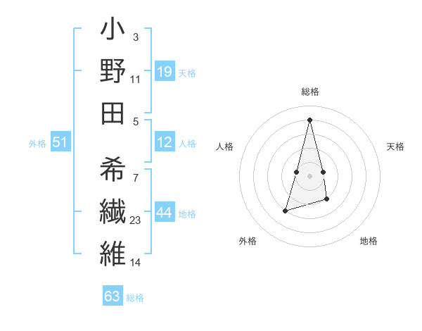 小野田 希繊維さんを姓名の画数から五運を鑑定