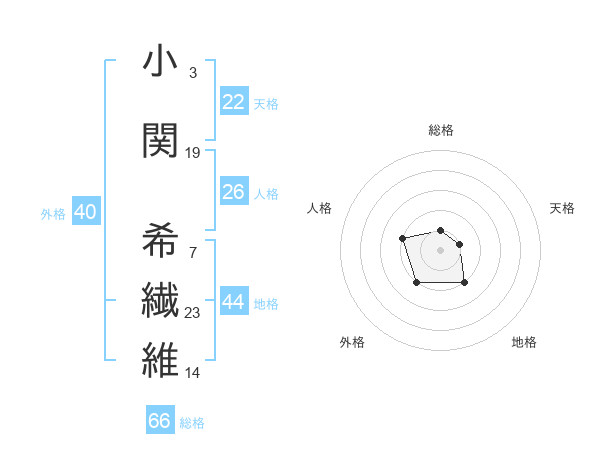小関 希繊維さんの総格は66画の1点