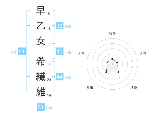 早乙女 希繊維さんを姓名の画数から五運を鑑定