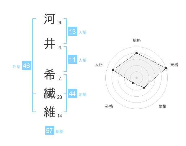 河井 希繊維さんを姓名の画数から五運を鑑定