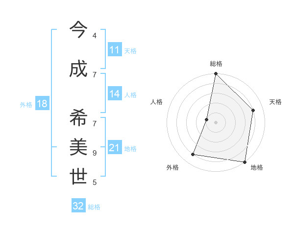 今成 希美世さんの地格は21画の5点!
