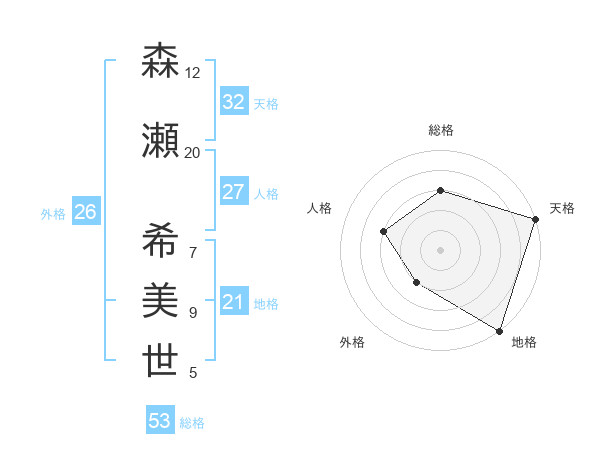 森瀬 希美世さんの総格は53画の3点!