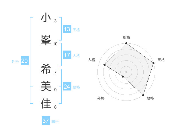 小峯 希美佳さんの総格は37画の5点!