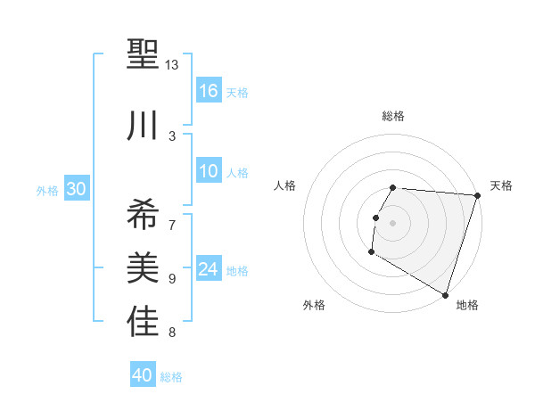 聖川 希美佳さんの総格は40画の2点!