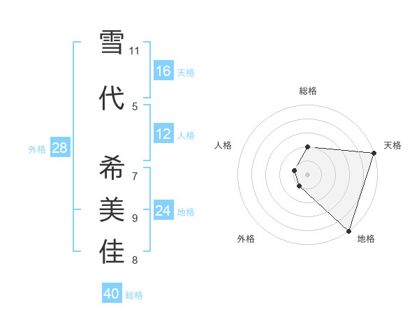 雪代 希美佳さんを姓名の画数から五運を鑑定