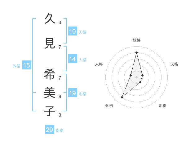 久見 希美子さんの総格は29画の4点!
