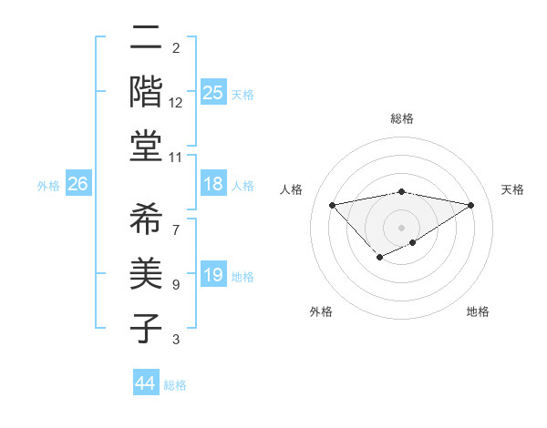 二階堂 希美子さんの天格は25画の4点!