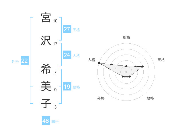 宮沢 希美子さんを姓名の画数から五運を鑑定