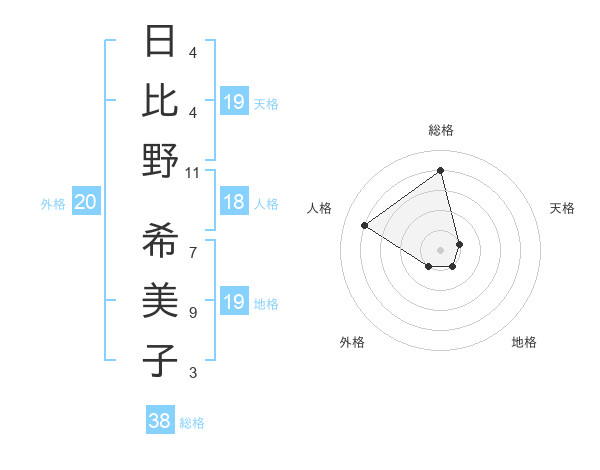 日比野 希美子さんを姓名の画数から五運を鑑定