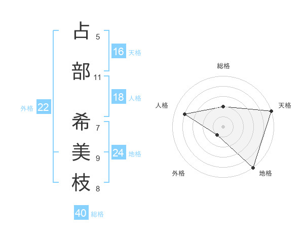 占部 希美枝さんを姓名の画数から五運を鑑定