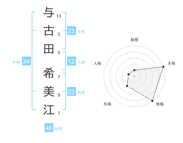 与古田 希美江さんを姓名の画数から五運を鑑定