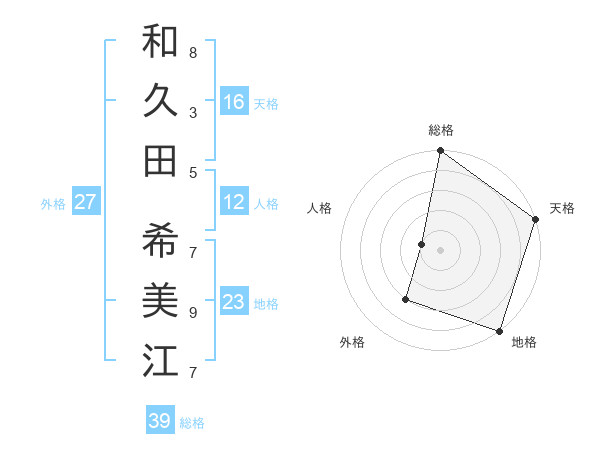 和久田 希美江さんの総格は39画の5点!