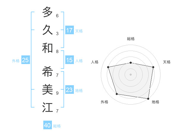 多久和 希美江さんを姓名の画数から五運を鑑定