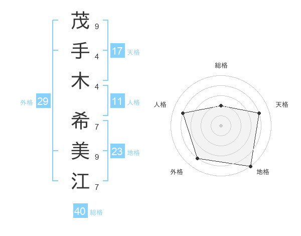 茂手木 希美江さんを姓名の画数から五運を鑑定