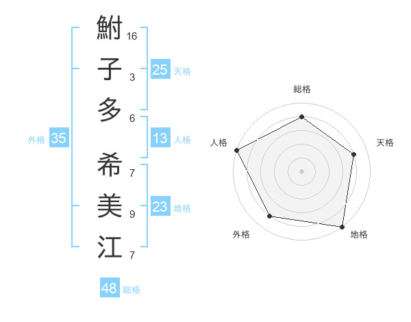 鮒子多 希美江さんを姓名の画数から五運を鑑定